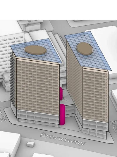 Located in the First Hill neighborhood of Seattle, adjacent to the Seattle University and Swedish Hospital campuses, this mixed-use development is designed for two mass timber towers over a common concrete podium, and in pursuit of the Living Building Challenge, two performance strategies being deployed will include large-scaled photovoltaic shade canopies at the amenity rooftop areas and a district energy concept that will borrow, store, and utilize thermal energy generated by hospital processes for residential use. The project will include 602-market-rate apartments in a mix of 0, 1, and 2-bedroom unit types